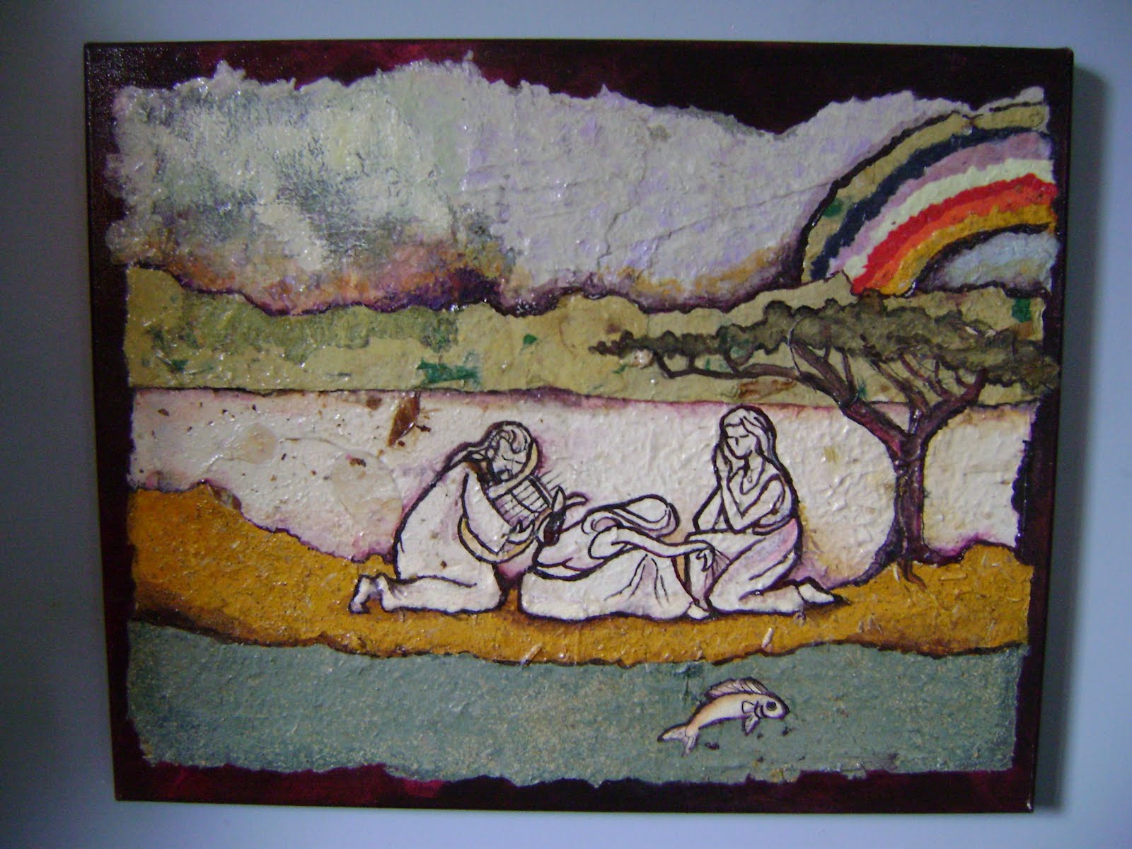Needless to say, there have been some varied requests. I’ve made visual aids for presentations, illustrations and “Show-and-Tell” pieces for sermons, designs for the covers of church bulletins, murals in churches and schools, props and sets for plays, window paintings. Once I did portraits in pencil for a whole grade five class and the students had a bake sale to pay my “commission”.