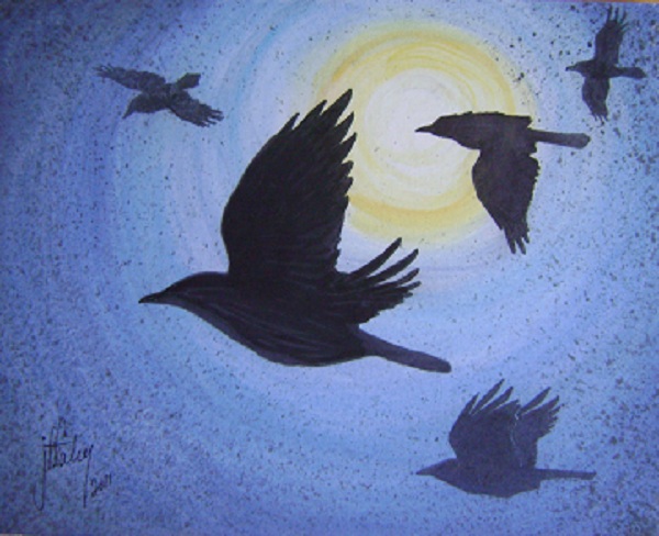 So, for the moment, the new craze is “Crows”…I will post new works as I complete them and I’ll do my homework so I can refer you to anecdotes and adages and anthologies about these feathered friends. In the mean time check out David Suzuki’s “The Nature of Things” from September 2011 -“A Murder of Crows” and be amazed!