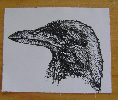 As well, I have a patron who enjoys crows as a subject of composition for some paintings and drawings and sculpture. My eldest son, Matt’s very significant other found the request on a Sales/Swap site. Swantje brought it very quickly to my attention as I had sold four pieces last summer with crows as the subject at a unique little cafe/giftshop whimsically named “The Tourist Trap”. Again I grieve the fact that I did not keep photos of theses pieces, Though I still have one piece, more “illustration than art”, from last summer, today I am able include a few sketches that I’ve completed recently.