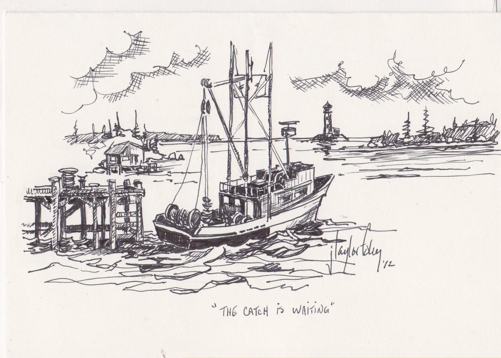 I won’t spend a lot of time writing tonight. I just want to scan and post a few in hopes that you may enjoy seeing them.Some are little seascapes. Some are flora and fauna of the seashore. Some are favored pets and other critters.
