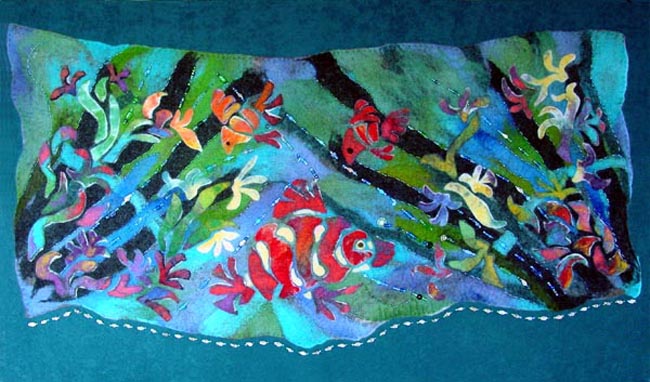 The possibilities! There are sculptural possibilities, clothing possibilities, decor possibilities “painting” possibilities. It boggles the mind. When I googled the craft on-line I nearly short circuited from data overload. Various techniques include: wet felting, needle felting and nuno felting.The raw materials and tools are simple with a huge opportunity for recycling. Raw and car