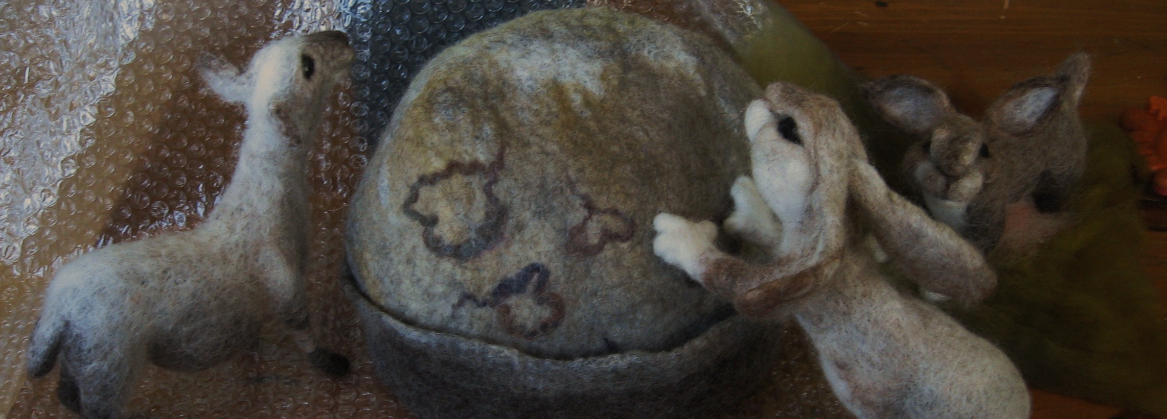 When I visited Shelby at P’lovers a few weeks back I had felted some cool tea cozies. As she is another of the many surfers in my life, her first impulse was to pull one on her head and immediately suggest that my template be modified to be a cozy for her head. With Easter orders to fill it was a long time coming but here’s the first!