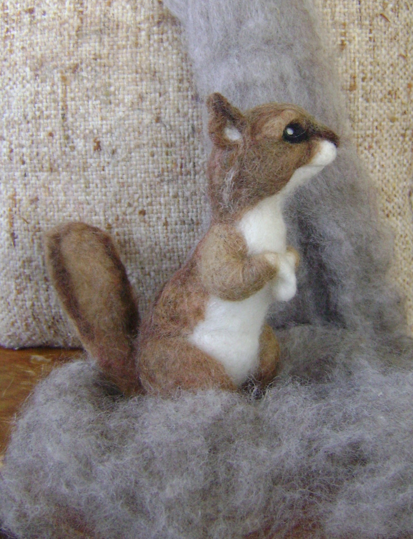 The list of demands for work is growing and with that a great encouragement. Staying on track I had vowed to catch up home and hearth before starting production. Though I slated January 5th as a starting date I have already begun commissions for husband, as he travels north next month. The fox from my December 31st blog, the squirrel above and the convincing “in-progress” bear below are testament to the fact that I’m chomping at the bit to get started.