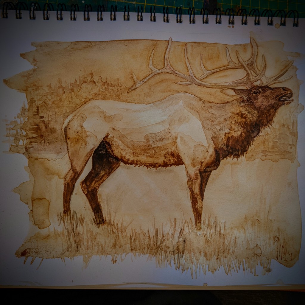I have been mucking about. Paint and paper and a doodle a day to get warmed up. The joke about a few of the new pieces being that l have the most unpalatable habit of dunking my brush in my coffee and accidentally sipping my brushwater. One mad day, l painted with my cuppa. Yummy, dark and super strong. I posted three or four and ended up with orders! Thus encouraged, l begin.