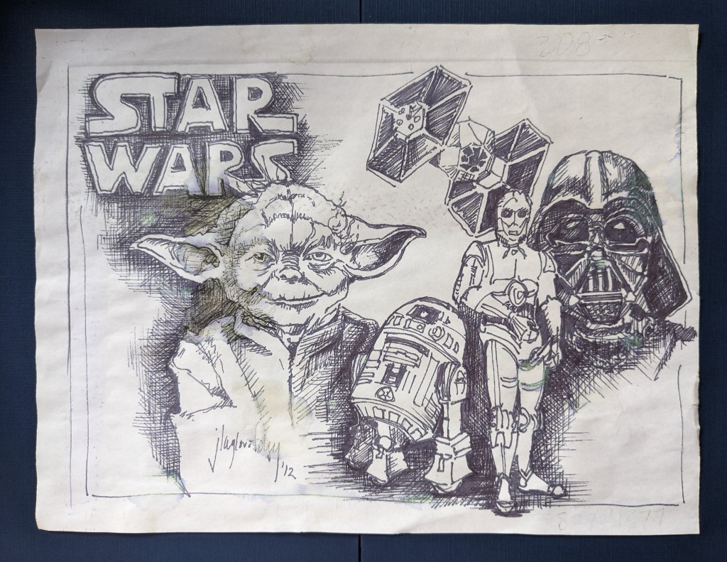 l used to get some fun requests and l did love a challenge. One of my favorites was from a friend who’s nephew was a Star Wars fanatic. l tried a compilation of iconic images from the series. Often l would snap a pic of the originals to keep on file.